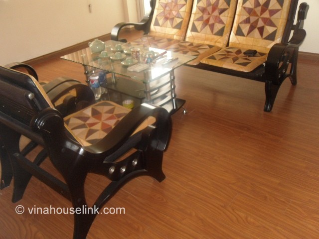 When you enter the premises, you will see the living room with wooden floor. it's furnished coffee table, chairs, ...