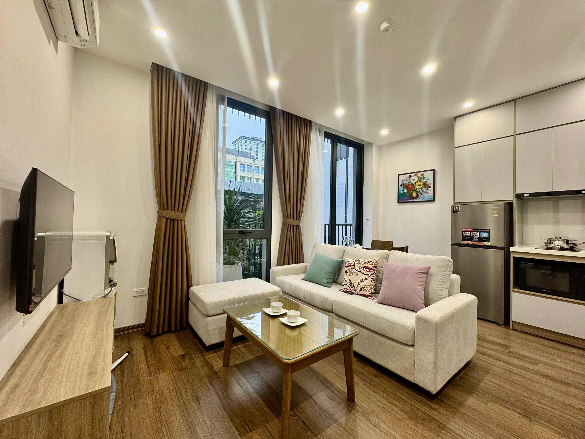 New apartment with floor area 50m2 ft 1 bedroom/1 bathroom for rent is located in serviced building on Dang Dung Street, Ba Dinh District, Hanoi.