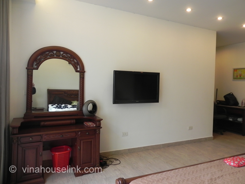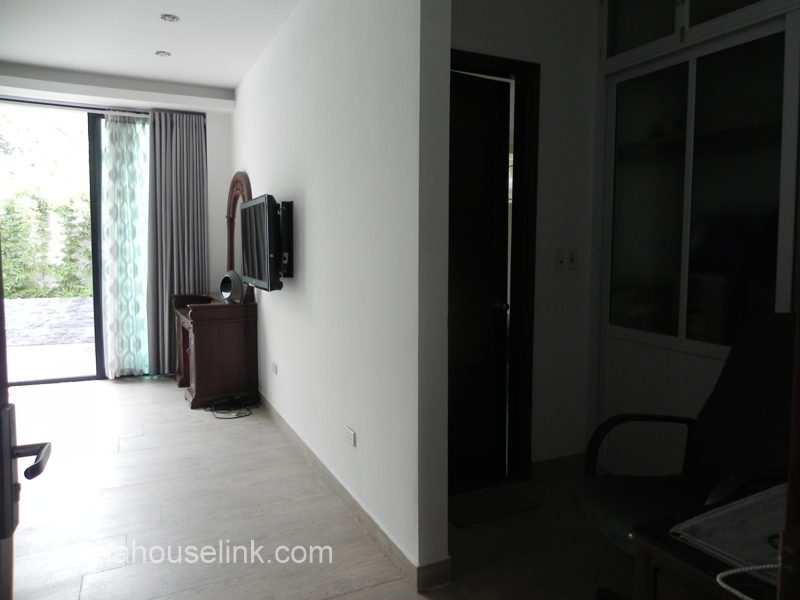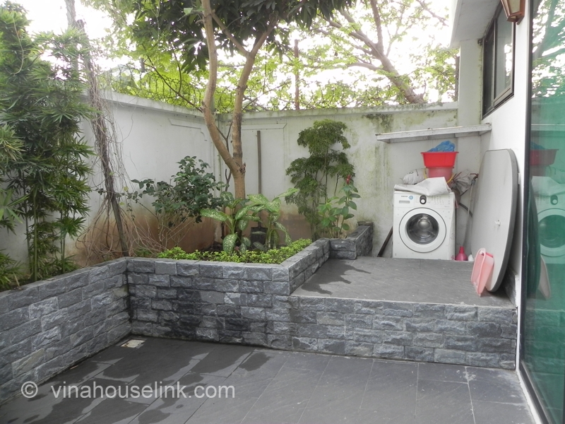 This is a gorgeous and   near nature house for rent in Dang Thai Mai- Tay Ho - Hanoi. It is huge with the area is up to 200 sqm. It has a big garden at front, a court yard combined garden and a small pond in the middle an other back yard will some small trees. The house has 2 spaces for bedrooms, 2 bathrooms, a large space for livingroom and 1 kitchen. The house has many glass windows with full of sunshine and nature around. The livingroom connected kitchen is very large and seperated with the rest by a small garden with a small court yard and a pond. The livingroom is also suit for setting up an office. It has a big round table with chairs. The kitchen is furnished with full of modern furniture and appliances such as electric cooker, cacbinet, fridge, cupboard, dinning table and chairs...The main bedroom is furnished with full furniture such as bed, mattress AC, wardrobe, TV ,cacbinet, making up table, mirror, working desk...The bedroom 2 will be soon furnihsed with full basic furniture. The 2 bathroom is very large, clean and fresh.