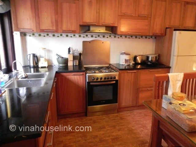 The kitchen furnished fully equipments such as gas cooker, cabinet, refrigerator, oven, ... with modern design, you can cook meal for you, your family and also your friends.